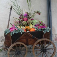Durch die Beschränkungen der Pandemie wurde in diesen Jahren jeweils der Erntedankgottesdienst der evangelischen Kirchengemeinde mit einem festlich geschmückten Handwagen, unserer Erntekrone und weiteren Erntegaben dekorativ unterstützt.